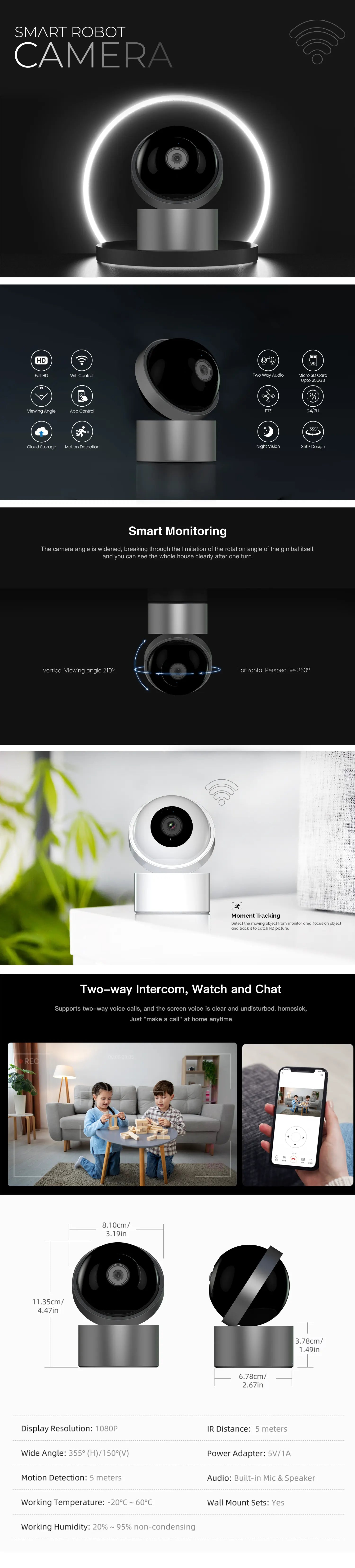 The Smart Robot Camera offers full control through a dedicated mobile app. View live feeds, adjust angles, receive alerts, and playback recordings — all from the palm of your hand. Perfect for Android and iOS users alike.